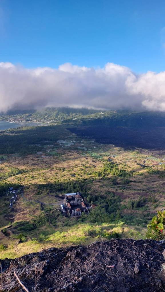 Je neemt een andere route naar beneden. De gids leidt je waarschijnlijk nog langs de krater en toont je de rookontwikkeling van de actieve vulkaan. Het dalen duurt gelukkig minder lang dan het stijgen, en dankzij het daglicht zie je ook beter waar je loopt. Toch is ook dit niet te onderschatten: je kuiten zullen ongetwijfeld branden. Let zeker ook op de omgeving en het dal waar je naartoe wandelt. Mount Batur blijft actief, en de laatste uitbarsting dateert slechts van 2000. Rondom de berg kan je zien waar het landschap werd bedolven door lava doormiddel van zwarte vlakten. Het was voor ons een uniek zicht.