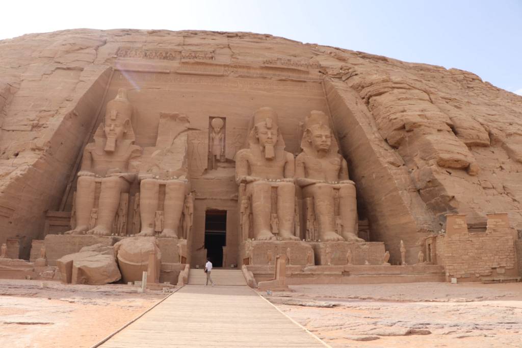 Aboe Simbel mag dan wel de spectaculairste tempel zijn in Egypte, echt makkelijk te bereiken kan je hem niet noemen. Ramses II bouwde zijn stokpaardje helemaal onderin Egypte, aan de huidige grens met Soedan. De dichtsbijzijnde stad, Aswan, ligt op zo’n drie uur rijden. Als toerist is het dus best een onderneming om er te raken. De meeste bezoekers schakelen dan ook een chauffeur in om er een daguitstap van te maken. Die haalt je ’s morgens vroeg op aan je hotel (vaak om 4 uur ’s ochtends) en rijdt met je gezelschap door de woestijn. Je komt dan rond 8 uur aan bij de site, en krijgt even tijd om die te bezoeken. Daarna stap je opnieuw de auto in, en kom je na de middag terug aan bij je hotel in Aswan. Op zich een kost- en tijdsefficiënte manier om Aboe Simbel te bezichtigen, ware het niet dat 95% van de toeristen exact dezelfde route aflegt op exact hetzelfde uur. Omdat men vroeger enkel onder politiebegeleiding richting de tempels kon, was het enige mogelijke vertrekuur toen 4 uur ‘s ochtends. Ondanks de opgeheven restricties, blijft dit voor veel reisbureau’s de standaard. Het gevolg? Overvolle tempels (maar enkel tussen 8 en 10u) en amper tijd om de pracht in je op te nemen.