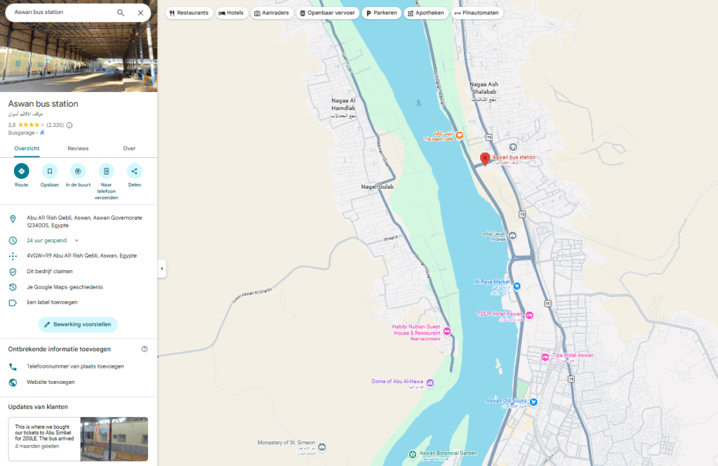 ! Let op: vanuit het busstation in Aboe Simbel vertrekken ook vaak toeristische minibussen. Dit zijn de typische kleine busjes die je overal in Egypte ziet. Zij wachten aan de halte tot hun busje gevuld is, en zullen vaak ook proberen om jou op hun busje te krijgen. We hoorden van andere reizigers dat hen verteld werd dat de openbare bus die dag niet zou rijden. Dat was een leugen. Trap hier dus niet in. Zorg dat je altijd de juiste informatie haalt bij betrouwbare personen.