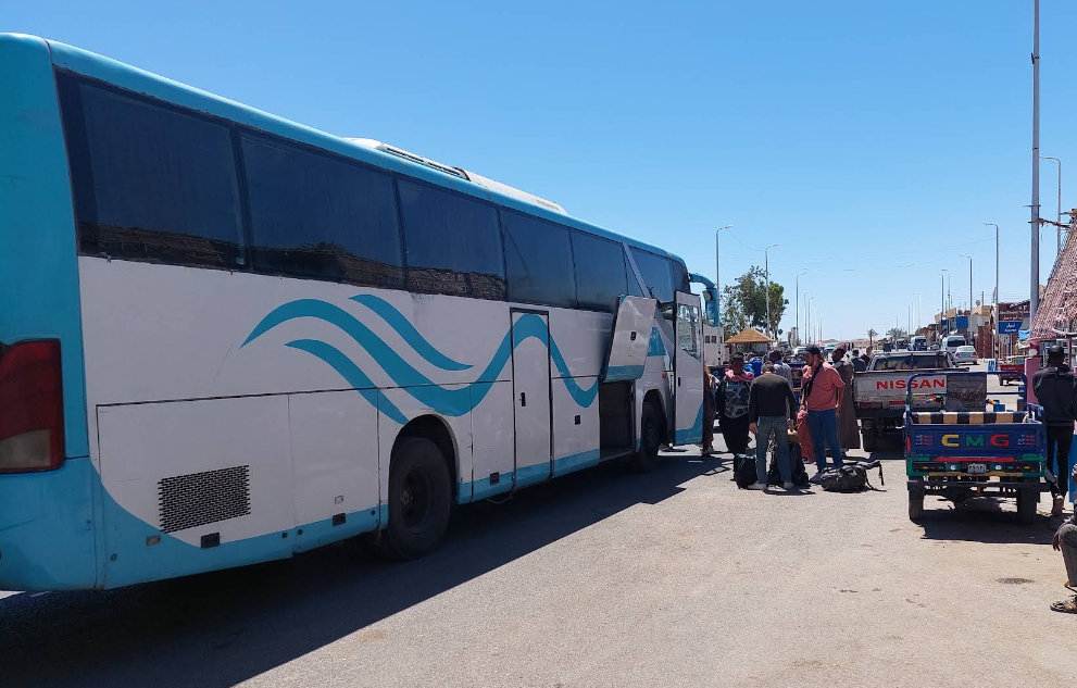 Om van Aboe Simbel terug naar Aswan te reizen, kan je twee bussen nemen. Eentje vertrekt om 6u ’s ochtends, eentje om 13u in de namiddag (maart 2026). Het gaat dan om dezelfde bus als in de heenrit, die na een uur pauze in Aboe Simbel gewoon terugkeert. Je kaartje kan je enkel de dag zelf kopen in het busstation, maar we raden aan goed op tijd aan te komen en op je hoede te zijn voor ‘toeristische’ prijzen. Onze bus zat best vol, en vertrok een kwartier te vroeg. Daarbij probeerde de ticketverkoper 50% meer te vragen dan de prijs voor de heenrit. Voor tips om dit te vermijden, lees je best ons artikel over scams in Egypte. Bij aankomst in het centrum van Aswan stopt de bus enkele keren om locals af te zetten. Stap gerust uit waar je wil, zodat je een rit van het busstation naar je hotel uitspaart.